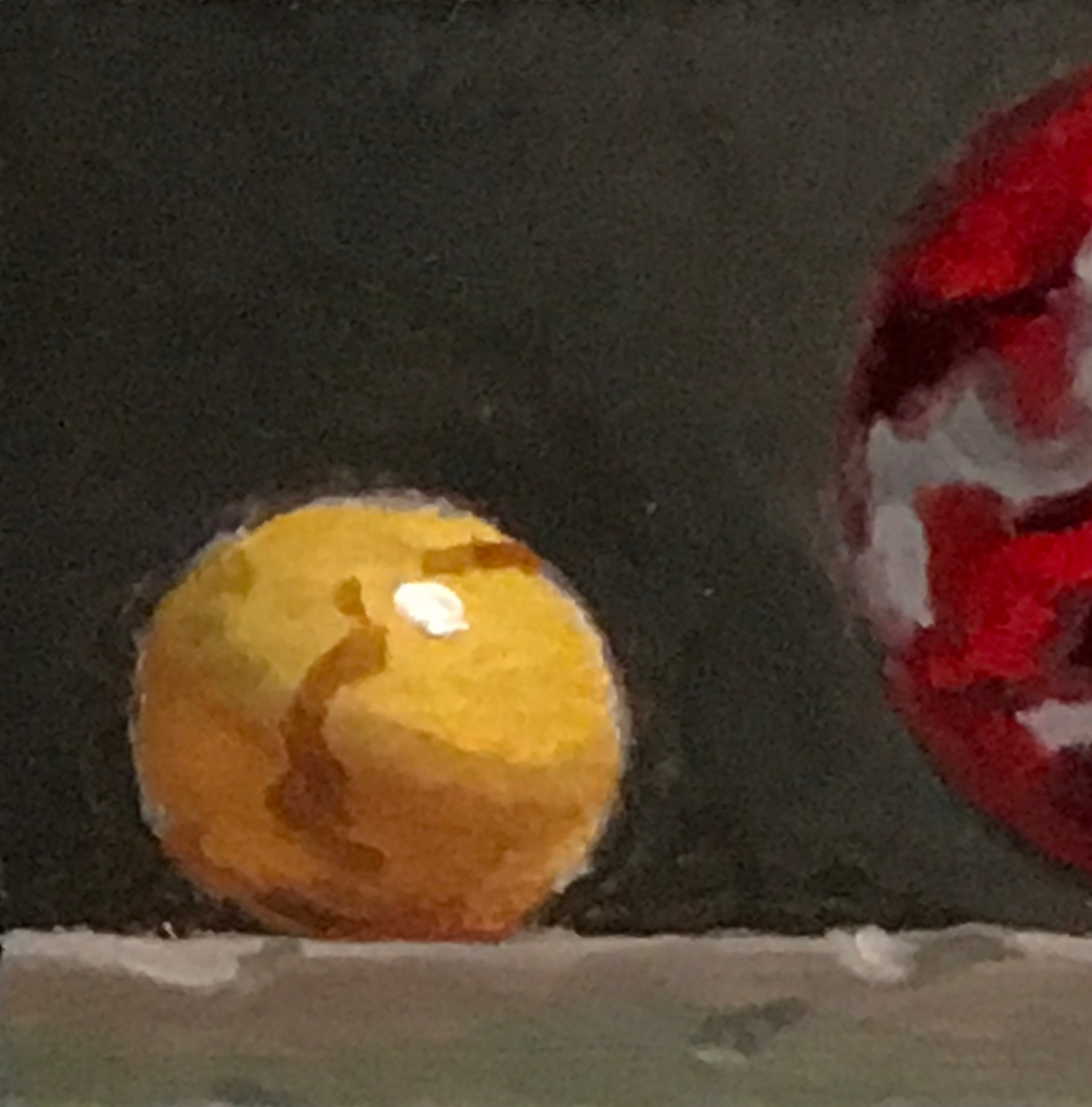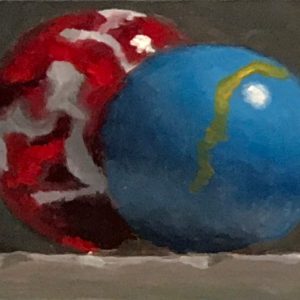 A playful look at relationships, this painting features a pair of marbles, comfortable and at ease with each other.
