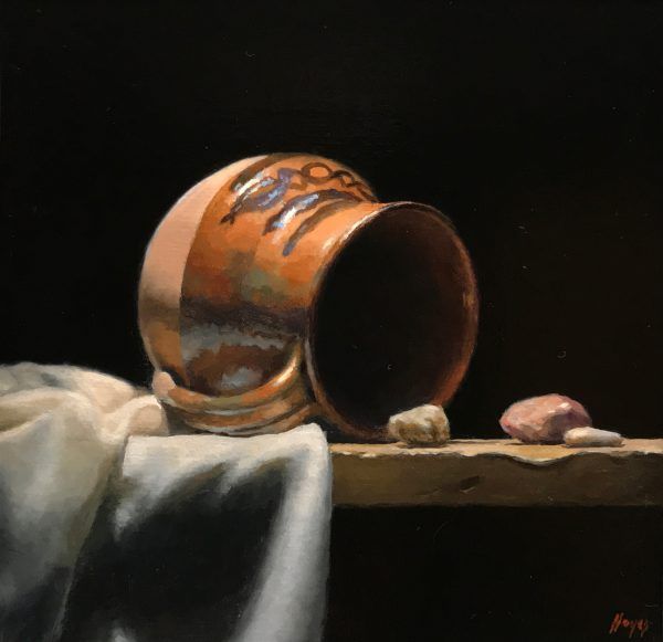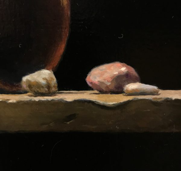 “Mexican Pitcher and River Stones” is an original still life painting.
