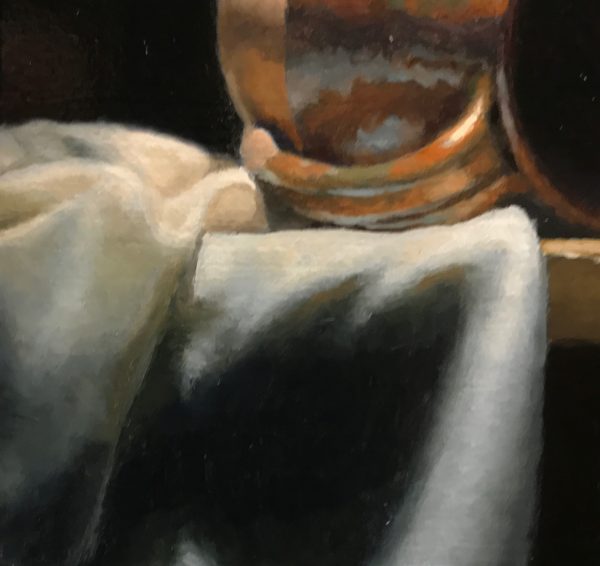 After several days, the underpainting is sufficiently dry for the color layer – this is what you see when you look at a finished painting. Color is applied directly on top of the underpainting, often in very thin transparent washes. Known as “glazing”, these washes can create a jewel-like depth and sparkling transparency of color that cannot be achieved in any other way.