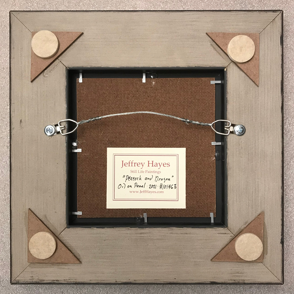 “Peacock and Dragon” is an original still life painting, done with oil on panel.