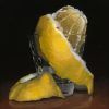 “Peeled Lemon in Shotglass” is an original still life painting, done with oil on panel.