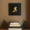 “Peeled Lemon in Shotglass” measures 5 x 5 inches (12 x 12 cm), and is presented in a flat panel black frame with a beveled edge. The outer dimensions of the frame are 11 x 11 inches (28 x 28 cm). Felt pads are affixed to each corner of the back of the frame to prevent any damage to your wall and to ensure that the painting rests perfectly parallel to the wall.