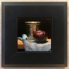 “Silver, Plum, Blue Silk” measures 5 x 5 inches (12 x 12 cm), and is presented in a flat panel black frame with a beveled edge. The outer dimensions of the frame are 11 x 11 inches (28 x 28 cm). Felt pads are affixed to each corner of the back of the frame to prevent any damage to your wall and to ensure that the painting rests perfectly parallel to the wall.
