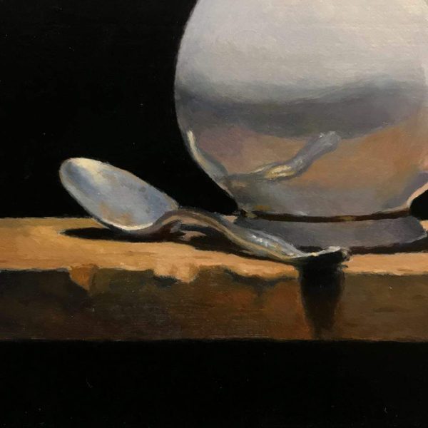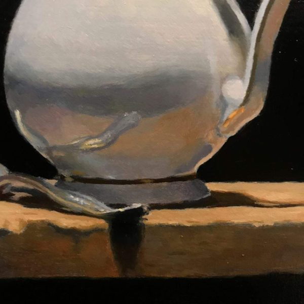 “Silver Spoon and Creamer” is an original still life painting, done with oil on panel.